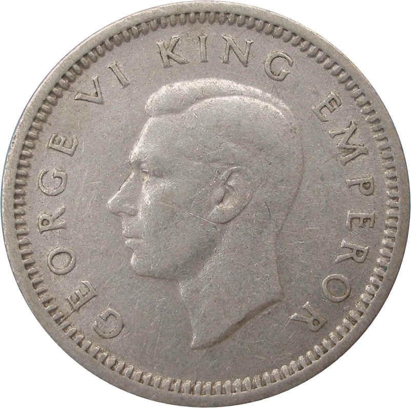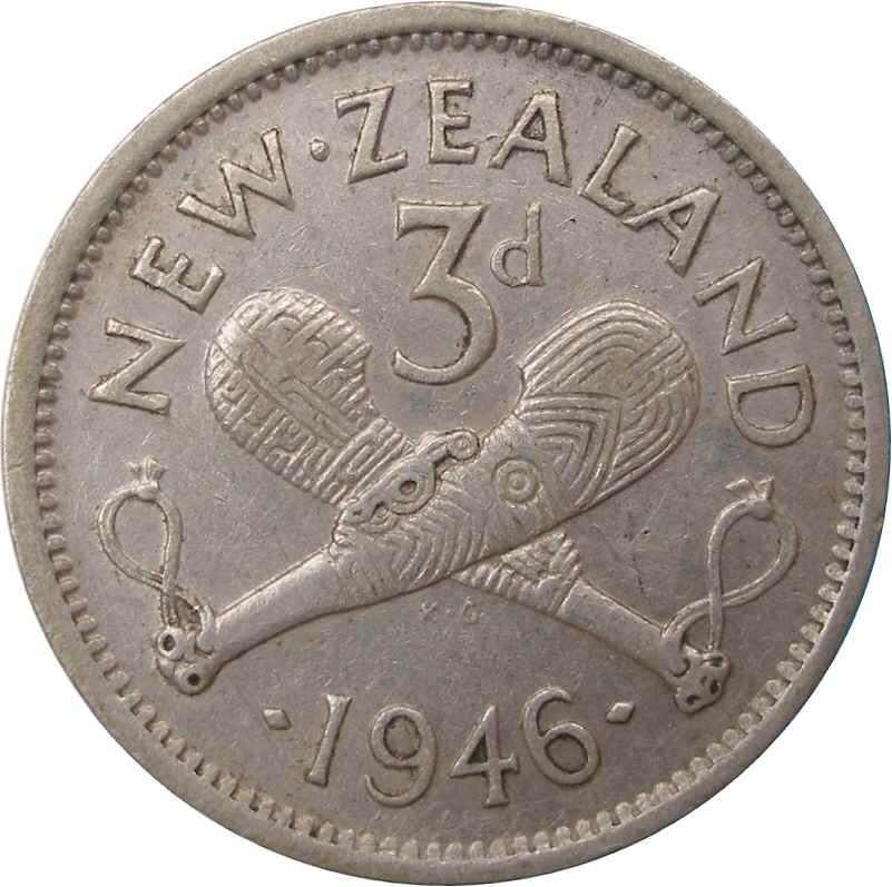 3 пенси — Георг VI (1-й тип) 1937 – 1946 Нова Зеландія