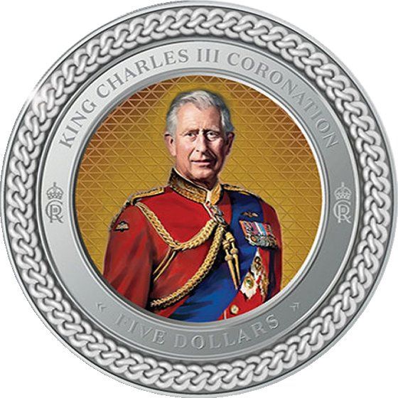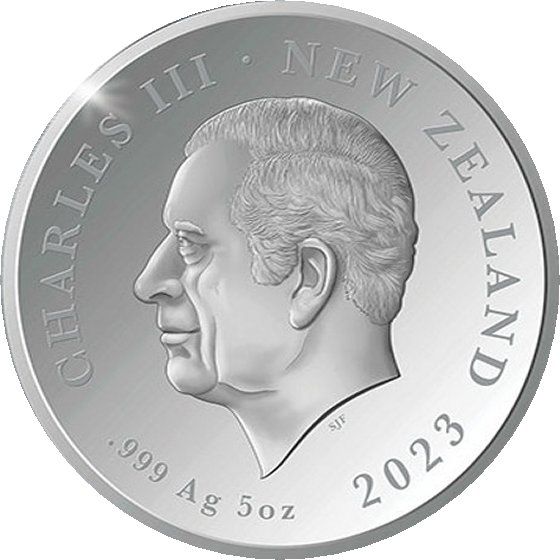 5 доларів — Карл III (повноформатний портрет — коронація; срібний пробний зразок) 2023 – 2023 Нова Зеландія