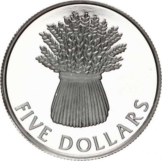 Назва: 5 доларів — Єлизавета II (3-й портрет; сноп пшениці, срібна монета Proof)