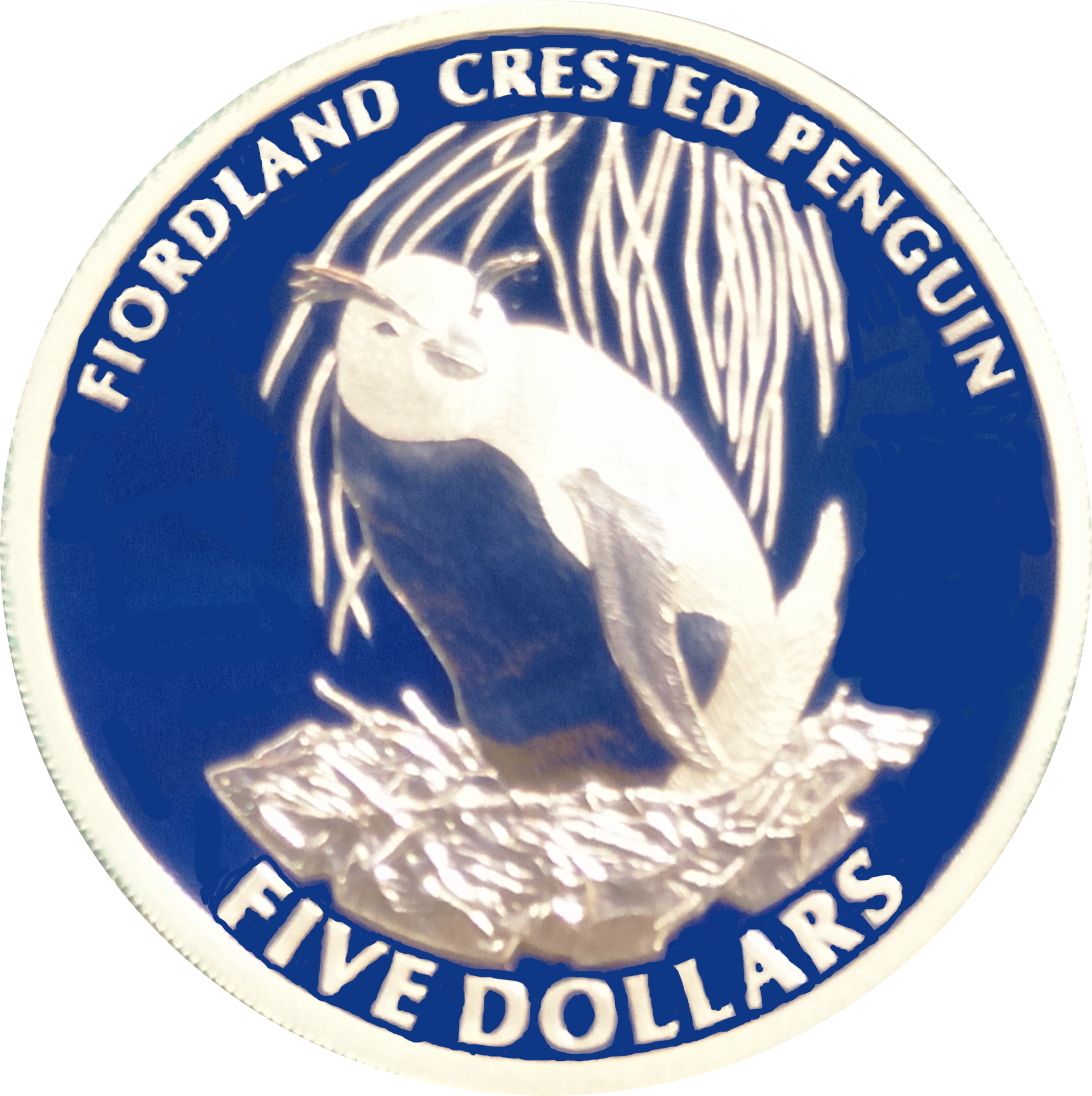 Назва: 5 доларів — Єлизавета II (4-й портрет; пінгвін з гребенем з Фьордленду, срібна монета)