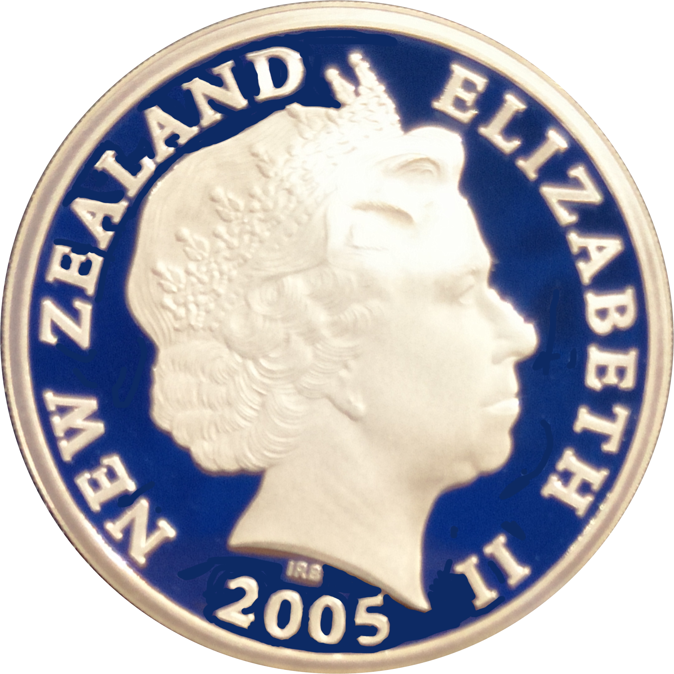 5 доларів — Єлизавета II (4-й портрет; пінгвін з гребенем з Фьордленду, срібна монета) 2005 – 2005 Нова Зеландія