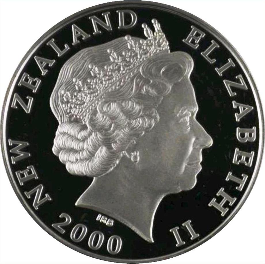 5 доларів — Єлизавета II (4-й портрет; чорно-білий баклан, срібний пробний зразок) 2000 – 2000 Нова Зеландія