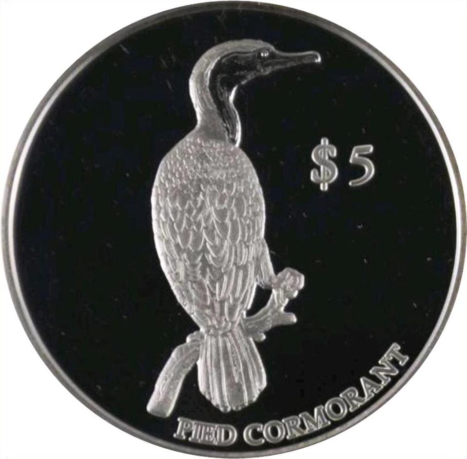 Назва: 5 доларів — Єлизавета II (4-й портрет; чорно-білий баклан, срібний пробний зразок)