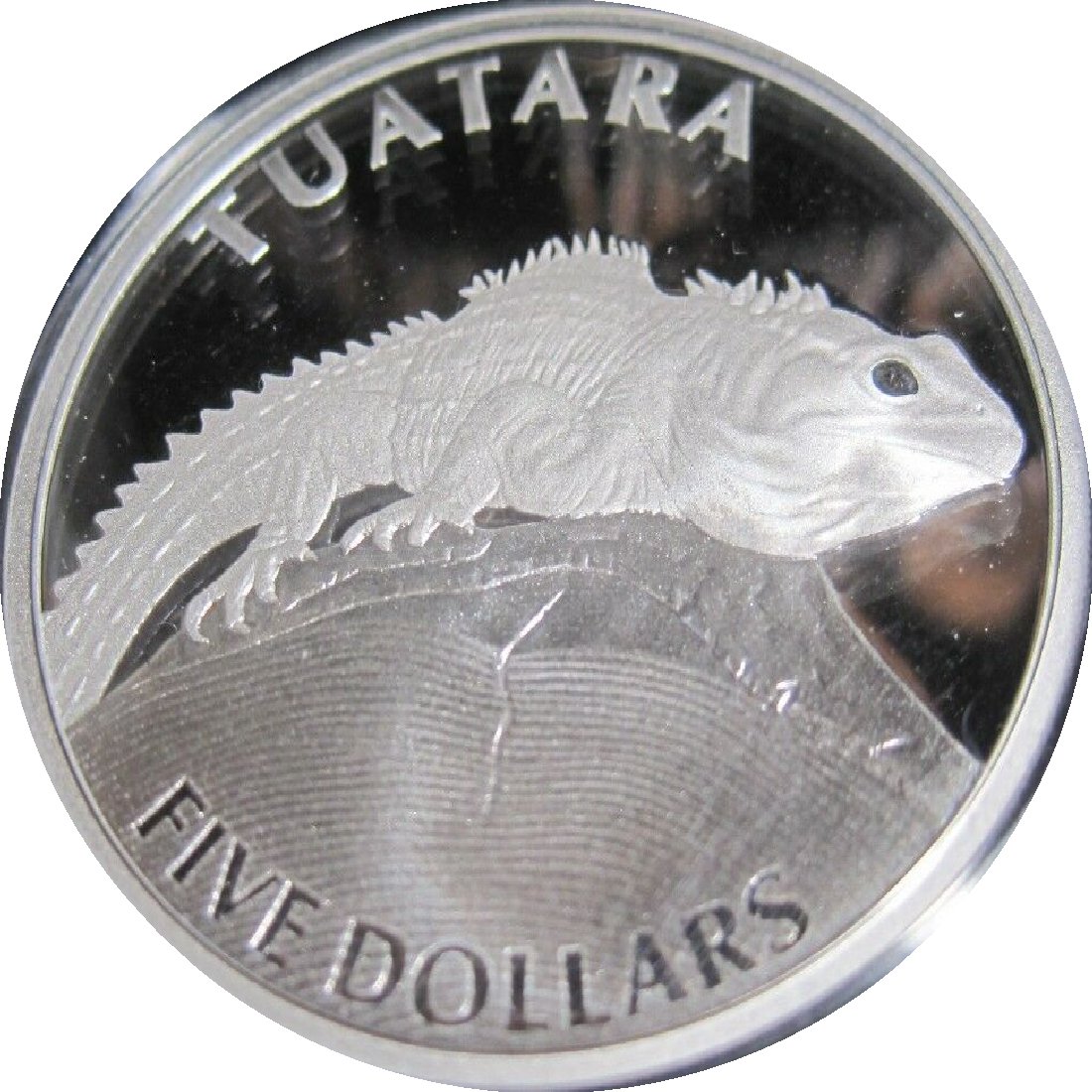 5 доларів — Єлизавета II (4-й портрет; Туатара, срібна монета Proof)
