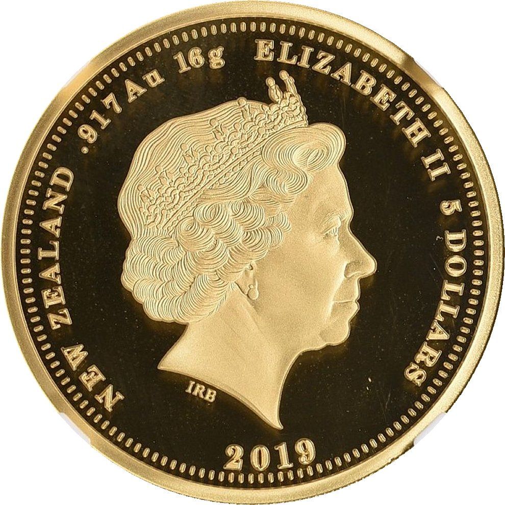 5 доларів — Єлизавета II (4-й портрет; Вікторія Дабл Соверен) 2019 – 2019 Нова Зеландія