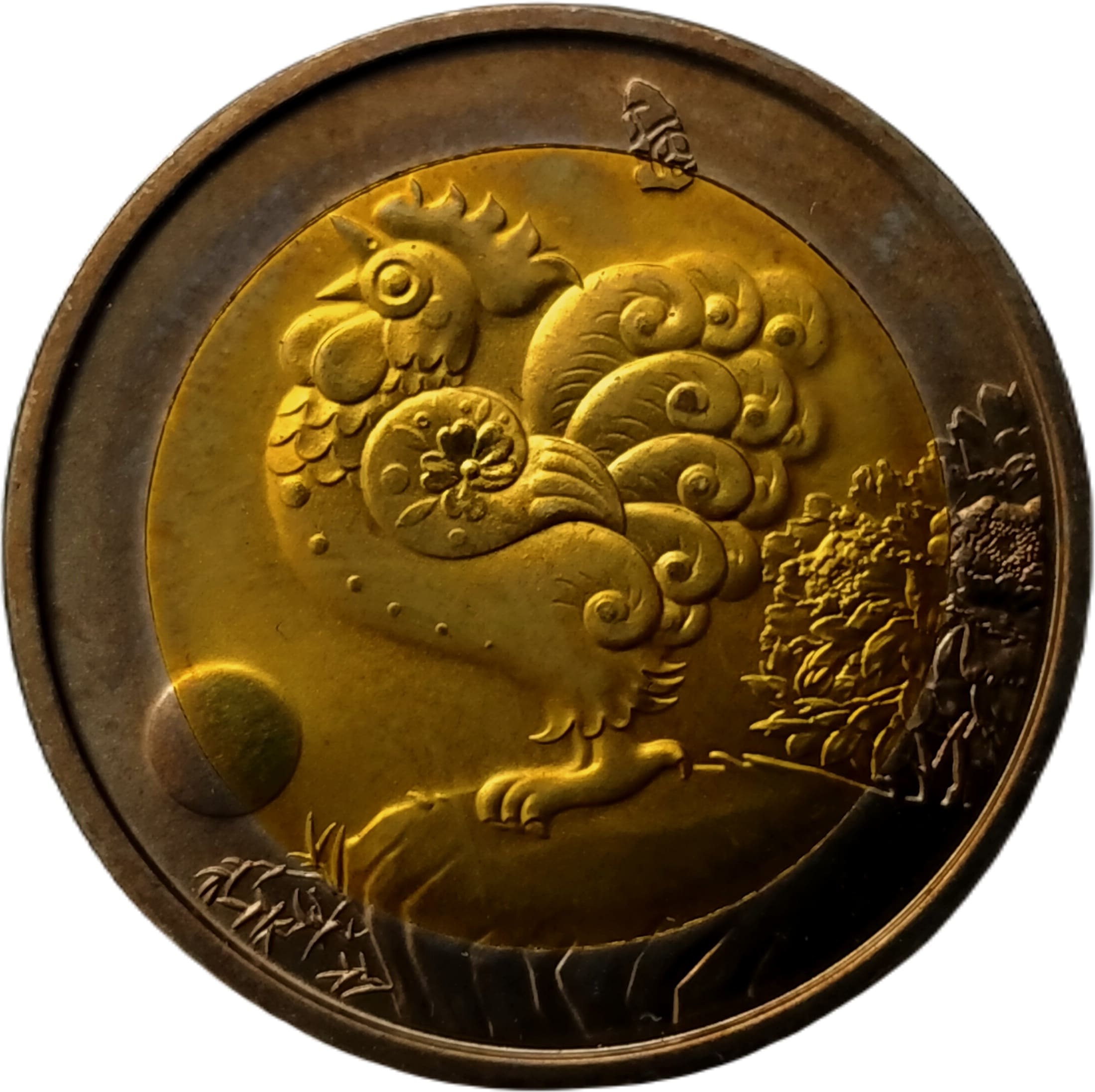 Метал: Біметалева: латунний центр у нікелево-срібному кільці