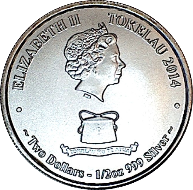 2 долари — Єлизавета II (жовтий тунець) 2014 – 2014 Токелау