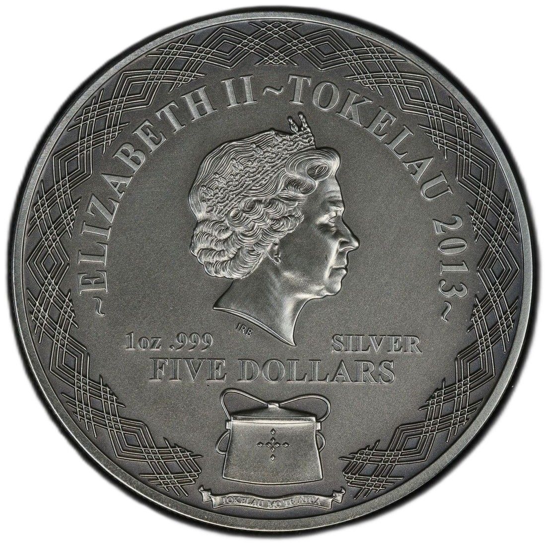 5 доларів — Єлизавета II (Черепаха; Срібний зливок) 2013 – 2013 Токелау