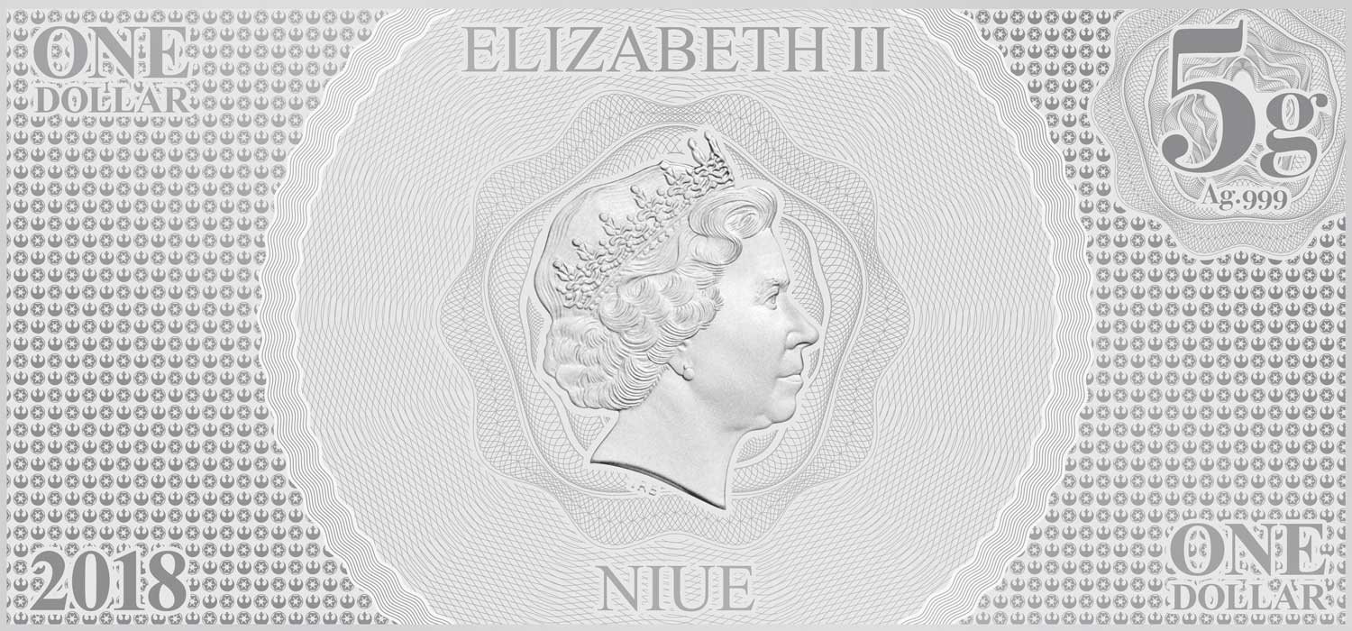 1 долар — Єлизавета II (Нова надія: Дарт Вейдер) 2018 – 2018 Ніуе