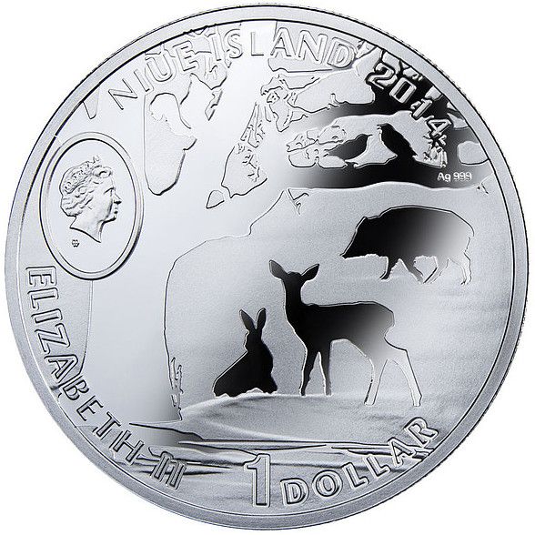1 долар — Єлизавета II (бурий ведмідь) 2014 – 2014 Ніуе