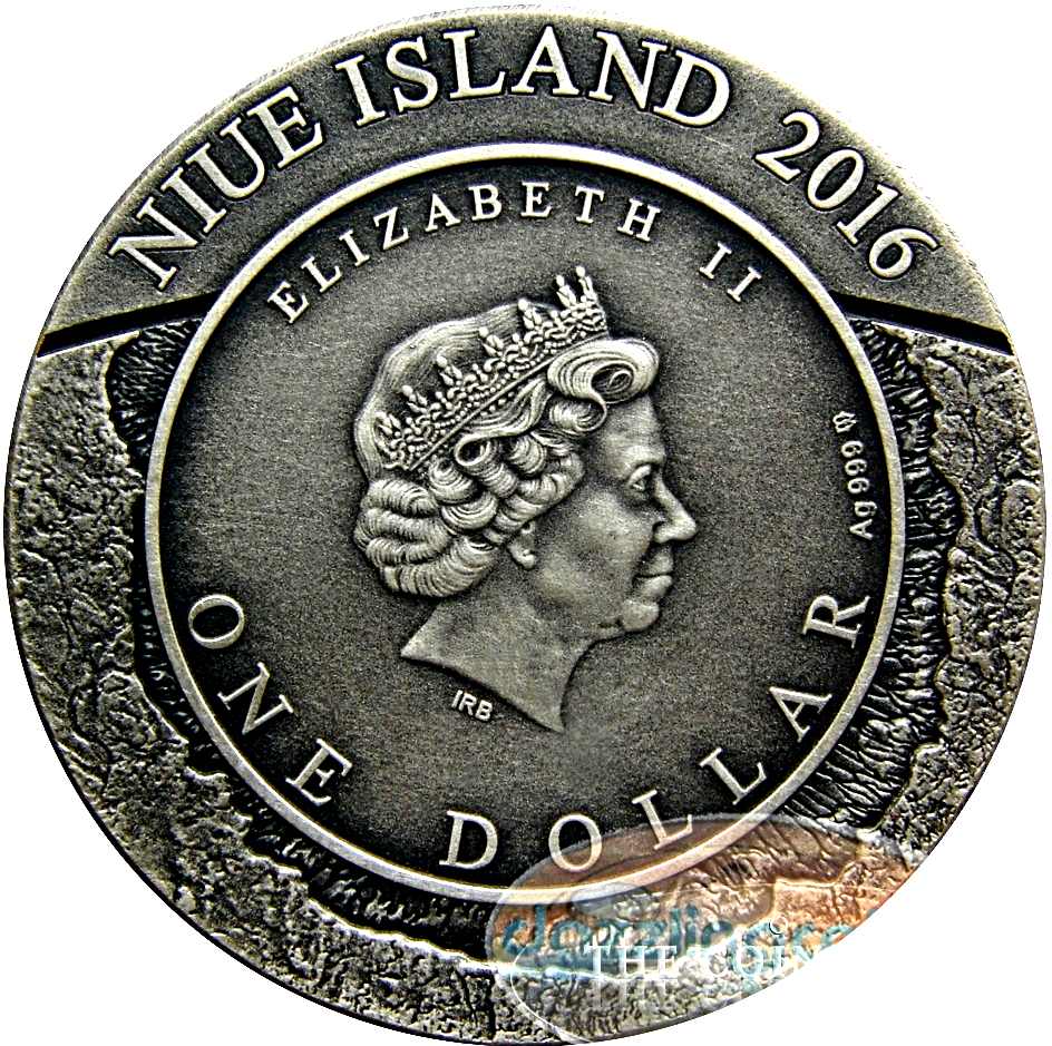 1 долар — Єлизавета II (метеоритний кратер Попігай) 2016 – 2016 Ніуе