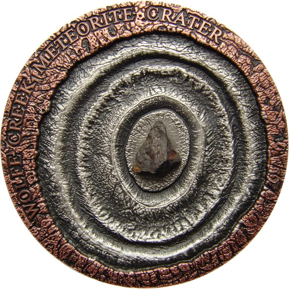 Опис: З інкрустованим автентичним фрагментом метеорита. На ній зображено дуже відомий метеоритний кратер, утворений в результаті падіння метеорита близько 300 000 років тому в Західній Австралії.