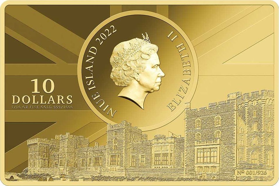 Опис: Портрет королеви Єлизавети II з Віндзорським замком внизу