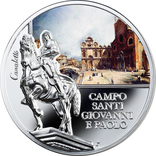 Опис: Відома картина Каналетто. Один із його шедеврів зображує площу Санті Джованні е Паоло з готичною францисканською базилікою з такою ж назвою та ренесансним фасадом Scuola Grande di San Marco, що височіє на задньому плані.