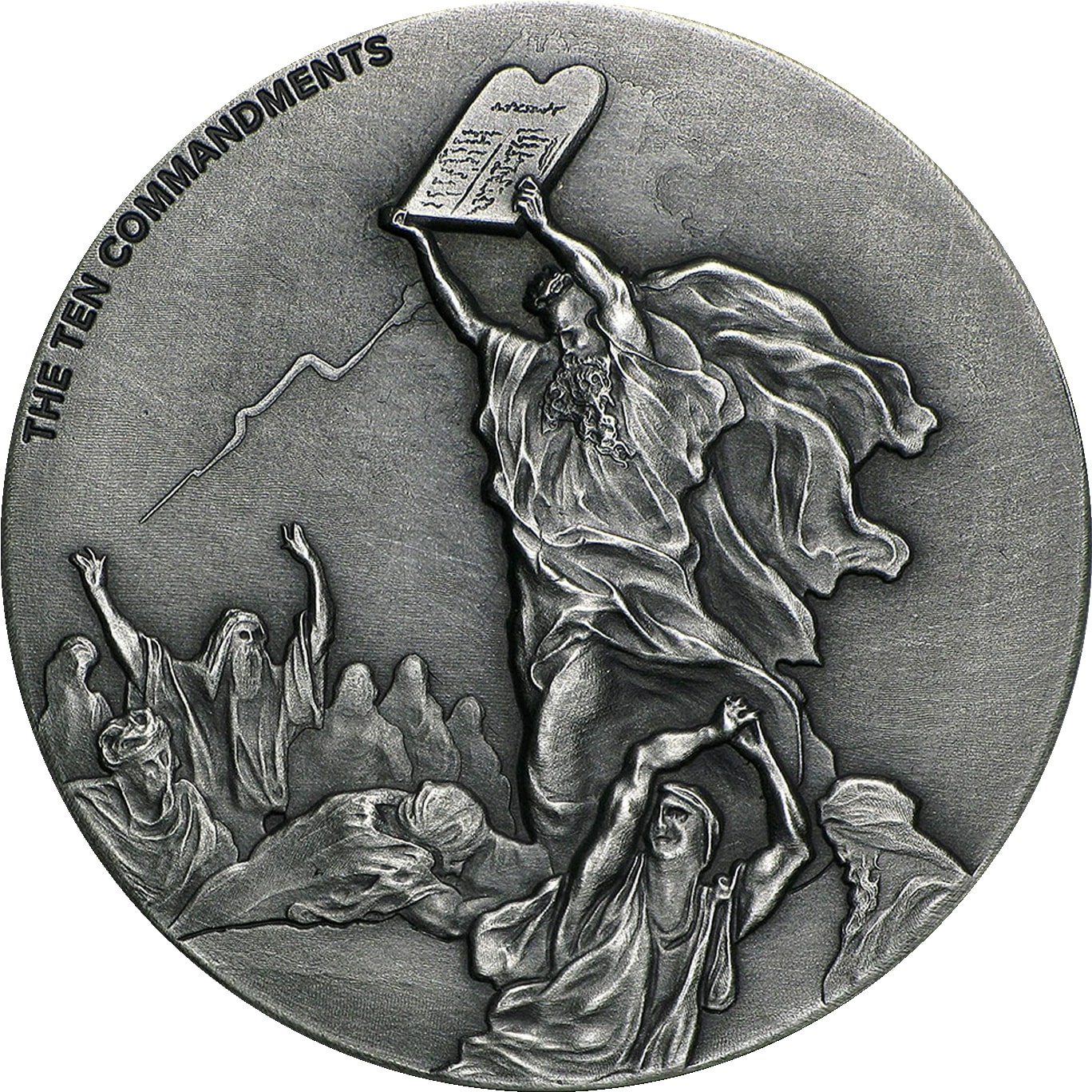 Опис: Натхненний ілюстрацією Гюстава Доре «Мойсей розбиває скрижалі Закону», на якій зображено, як Мойсей кидає Десять заповідей біля підніжжя гори, побачивши, що його народ грубо порушує Десять заповідей, які Бог щойно дав їм.