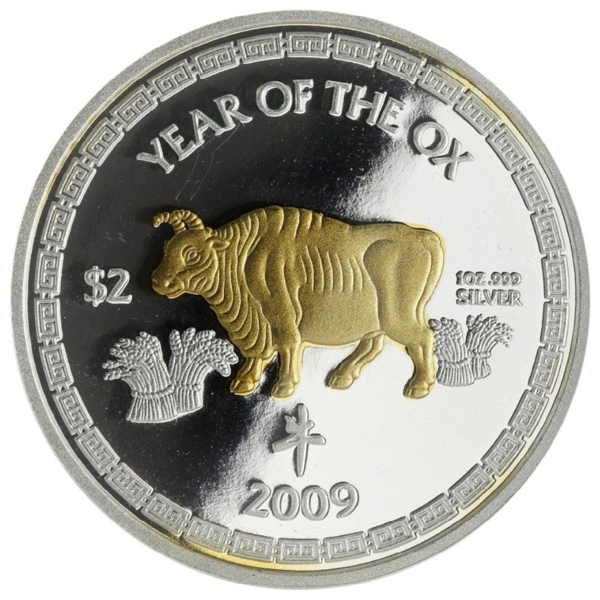 2 долари — Єлизавета II (Рік Бика) 2009 – 2009 Ніуе