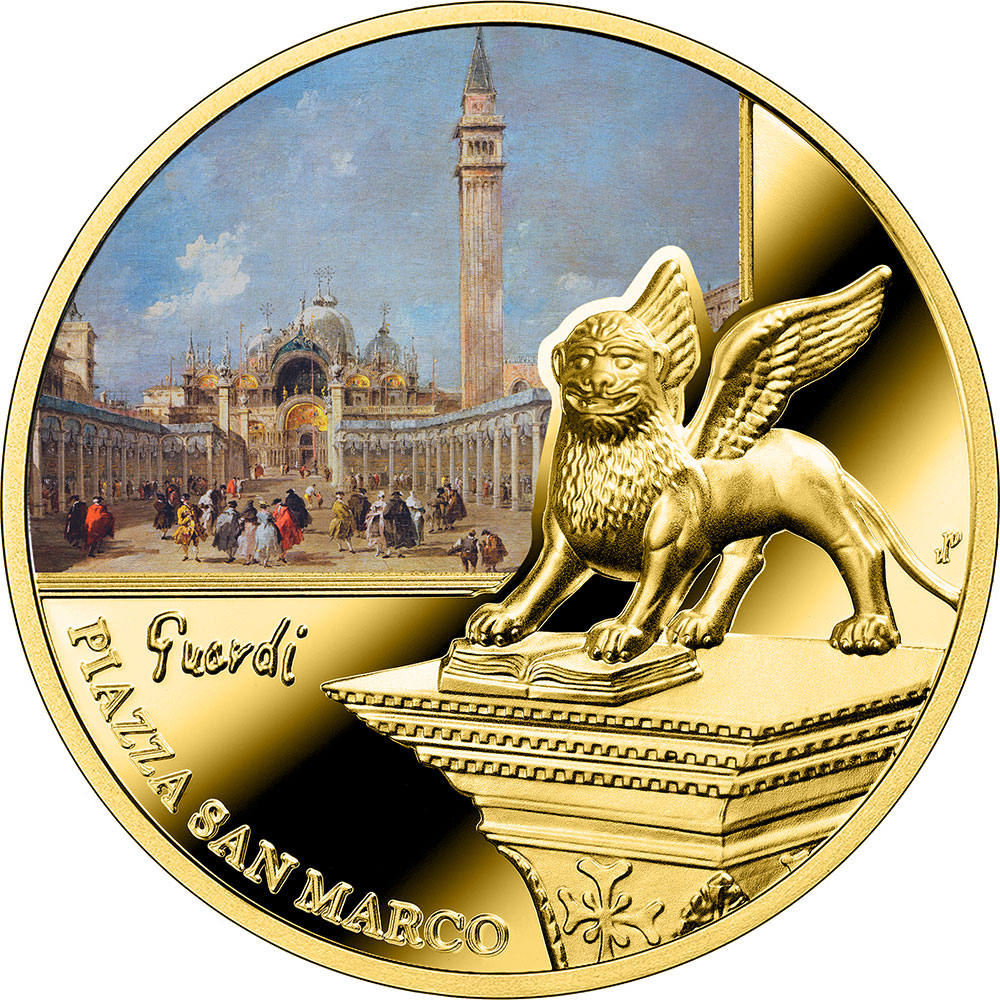 Опис: Фрагмент картини Франческо Гварді. Крилатий лев Святого Марка походить від однієї з двох колон, що несуть символи двох покровителів Венеції.