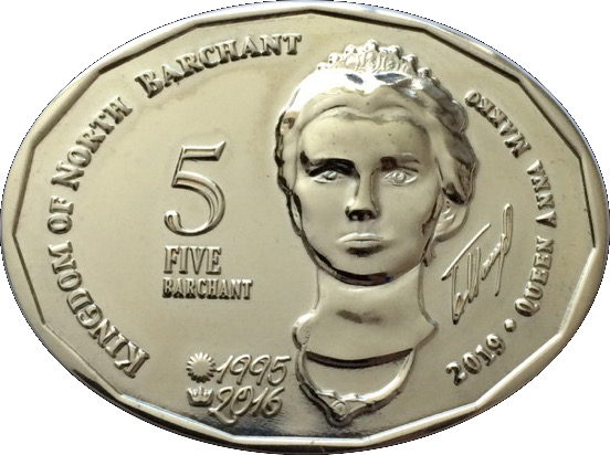 Опис: Дата Номінал Портрет королеви Анни Макко Дата народження — 1995 р. Дата сходження на престол — 2015 р.