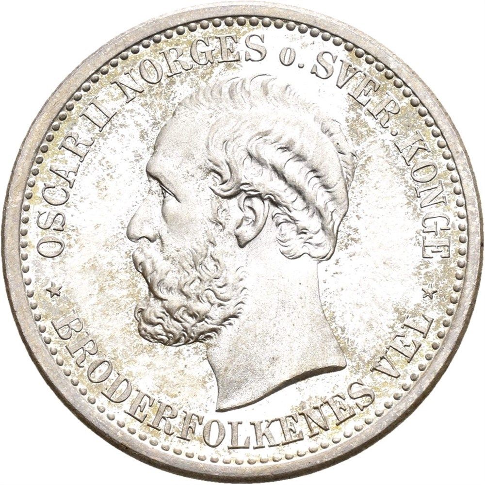 Опис: Бюст короля Оскара II, звернений вліво. Оточений написом. На обідку — кільце з намистинами.