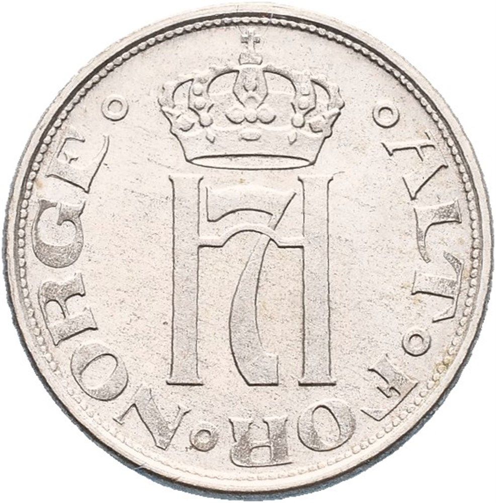 Опис: Коронований монограм Хакона VII. Оточений написом. На обідку — обідок з намистинами.