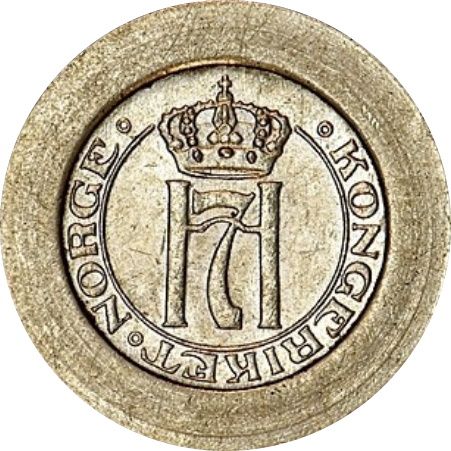Опис: Коронований монограм Хаакона VII у суцільному кільці. Оточений написом. Суцільне кільце на широкому обідку.