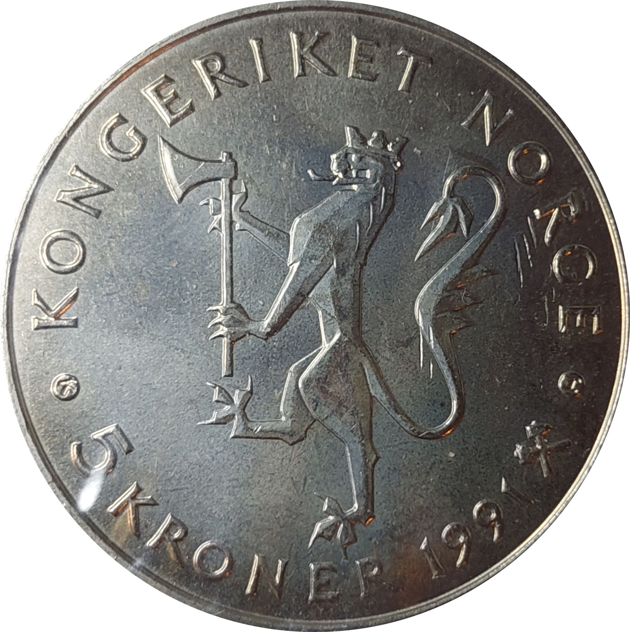 5 крон — Олав V (Національний банк) 1991 – 1991 Норвегія