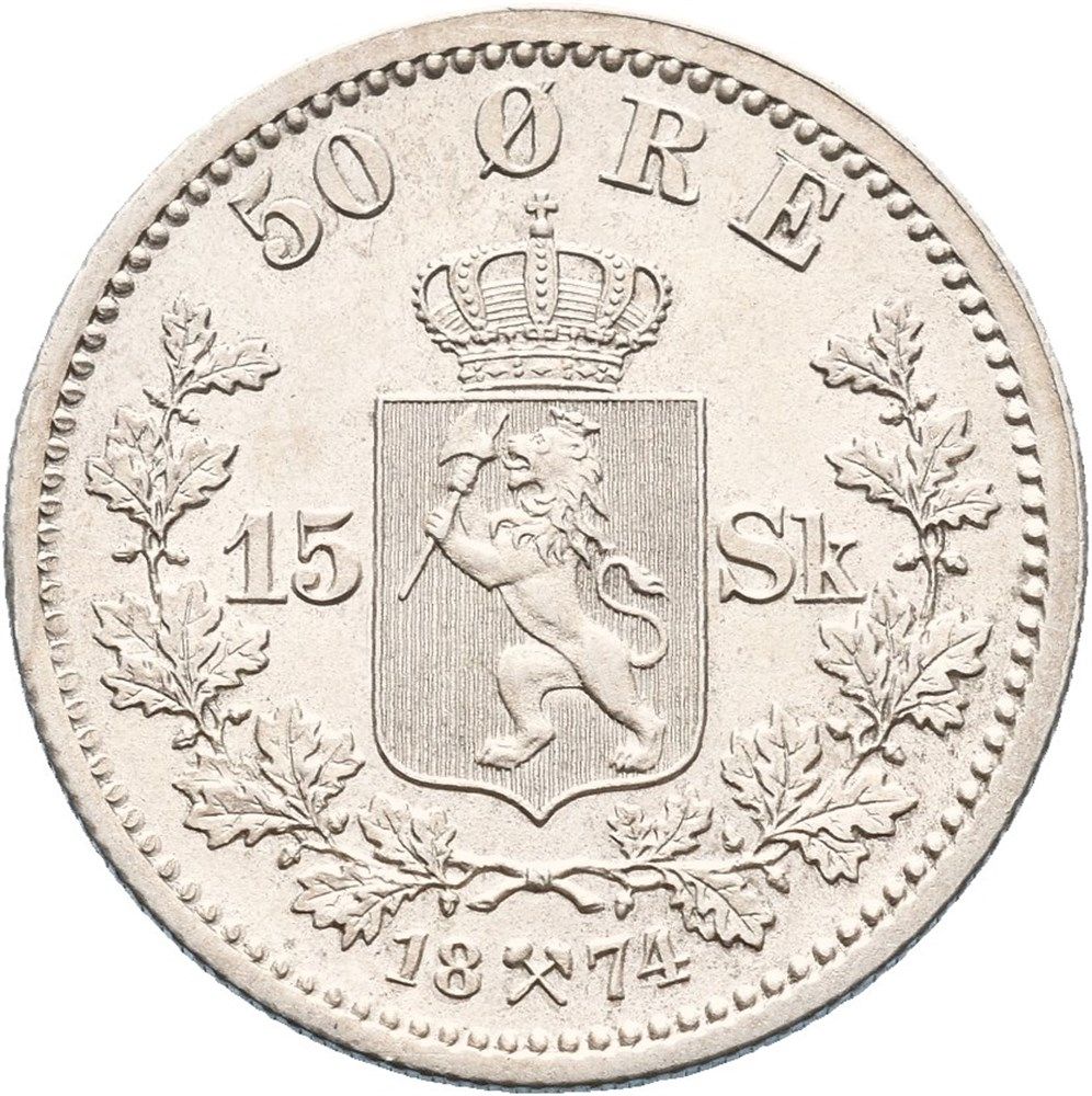 50 Øre / 15 Skilling — Оскар II 1874 – 1875 Норвегія