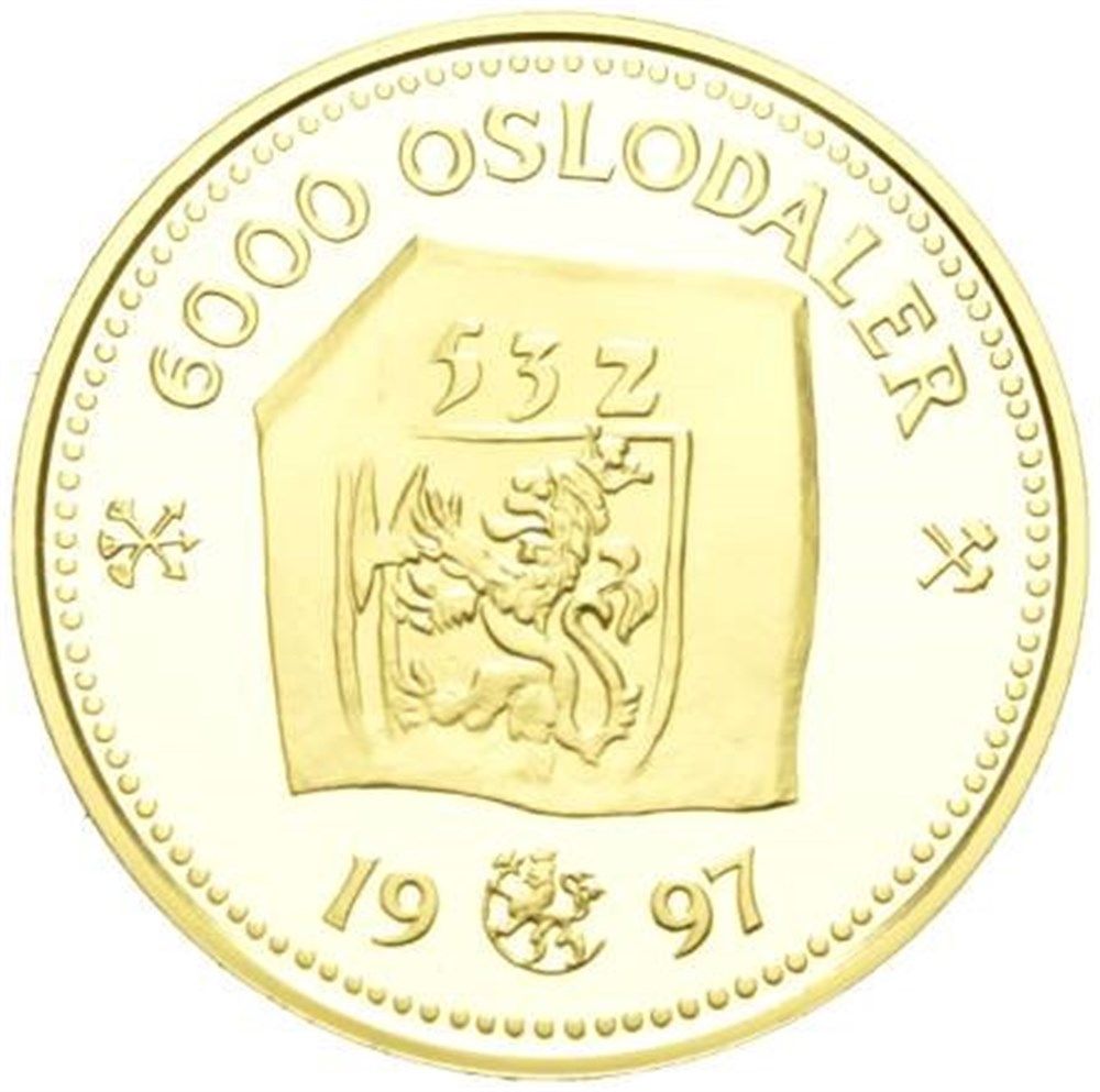 Опис: Зображення 1 марки Кліппінг 1532 року, напис у верхній частині. Три схрещені стріли зліва, схрещені молотки — знак монетного двору — справа. Коронований норвезький лев, що тримає алебарду, звернений ліворуч, розділяє дату внизу. Все в намистовому кільці, суцільне кільце на краю.