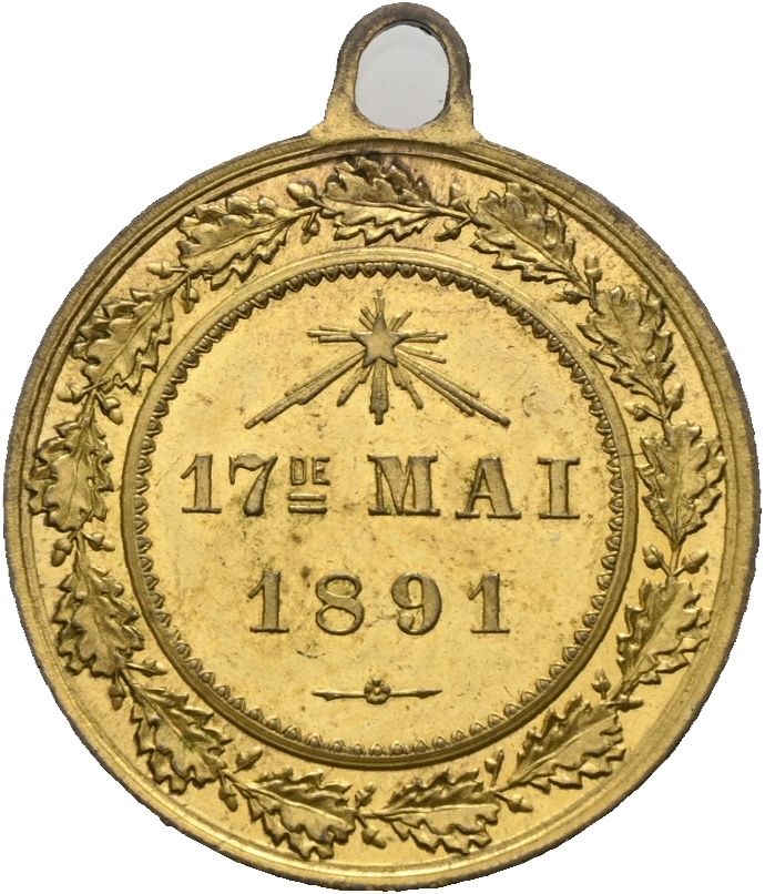 Назва: Медаль — 17 травня 1891 р. (Відкрита книга; позолочена бронза)