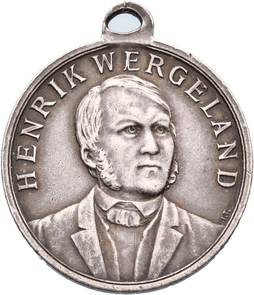 Опис: Портрет Генріка Вергеланда, звернений праворуч, надпис зверху.