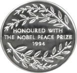 Медаль — лауреат Нобелівської премії миру (Іцхак Рабін) 1998 – 1998 Норвегія