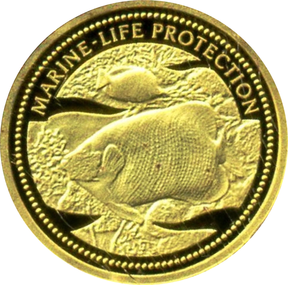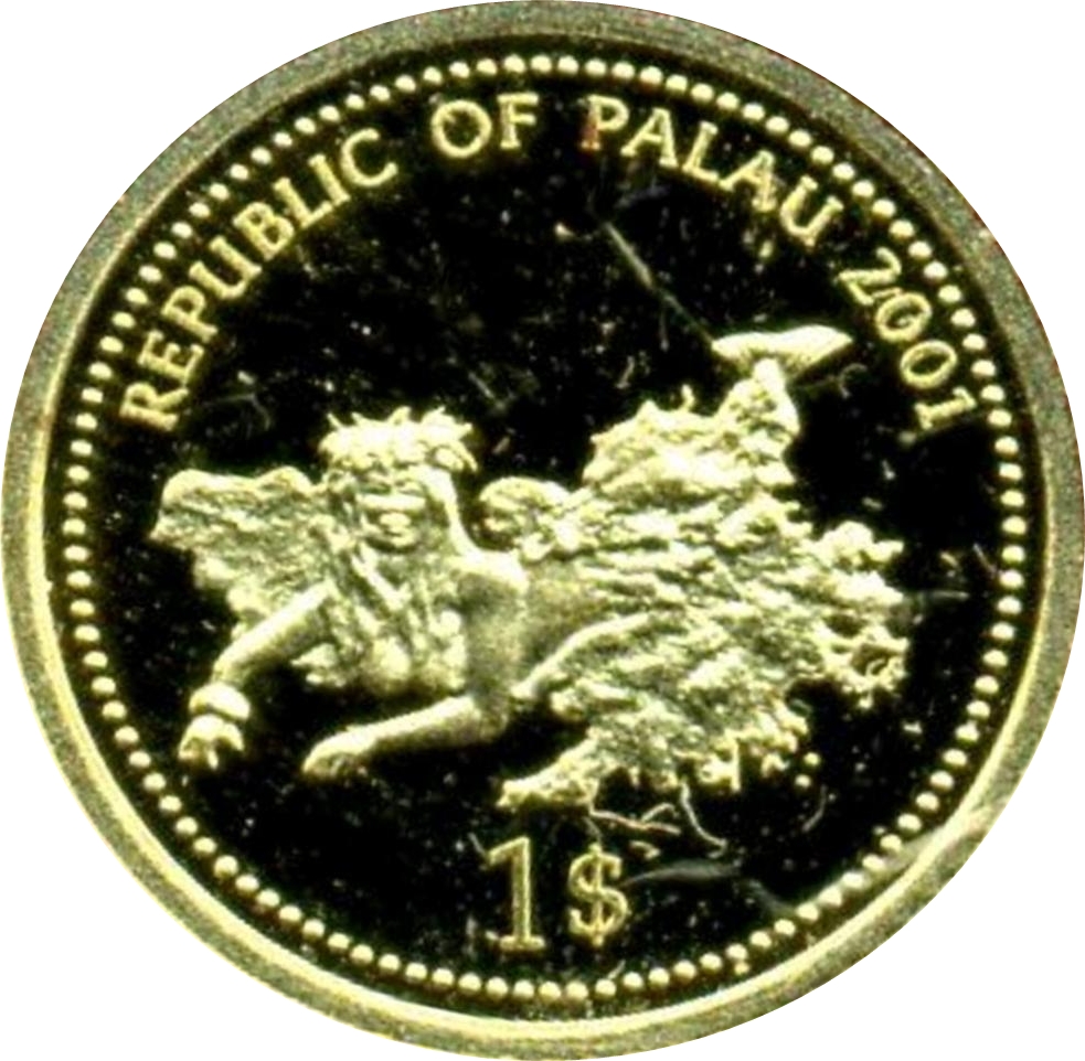 1 долар (риба-ангел з блакитним обличчям і риба-метелик; золота пробна емісія) 2001 – 2001 Палау