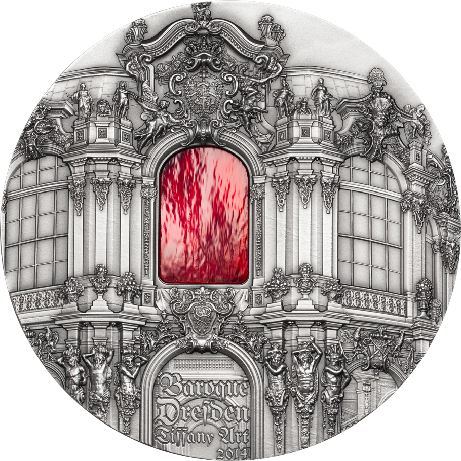 Опис: Державні герби. Кронентор у дрезденському Цвінгері з темно-червоною скляною вставкою замість вікна.