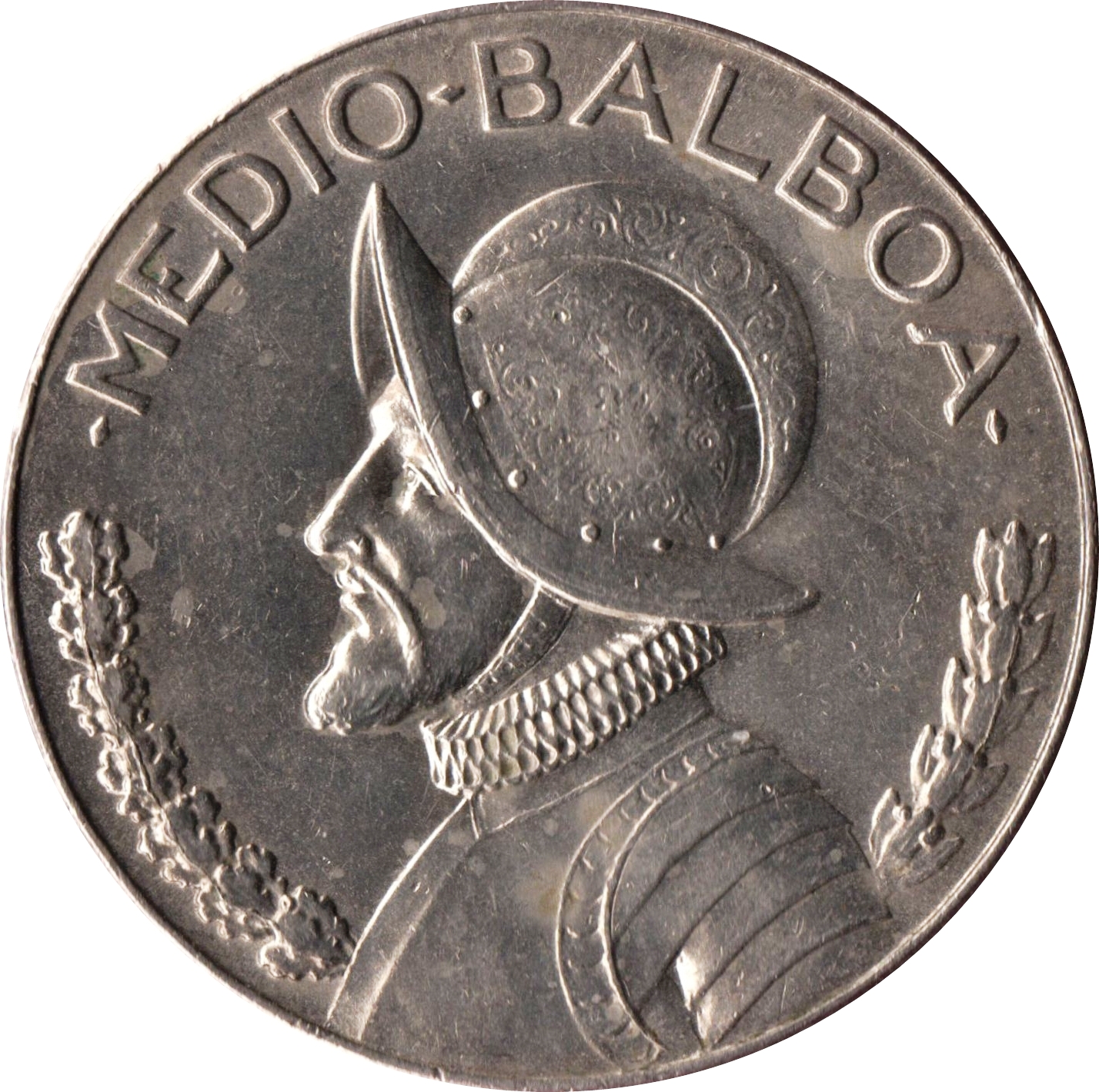 Опис: Броньований бюст з шоломом Васко Нуньєса де Бальбоа, звернений вліво, оточений номіналом літер і вінком. Бюст торкається нижнього краю.