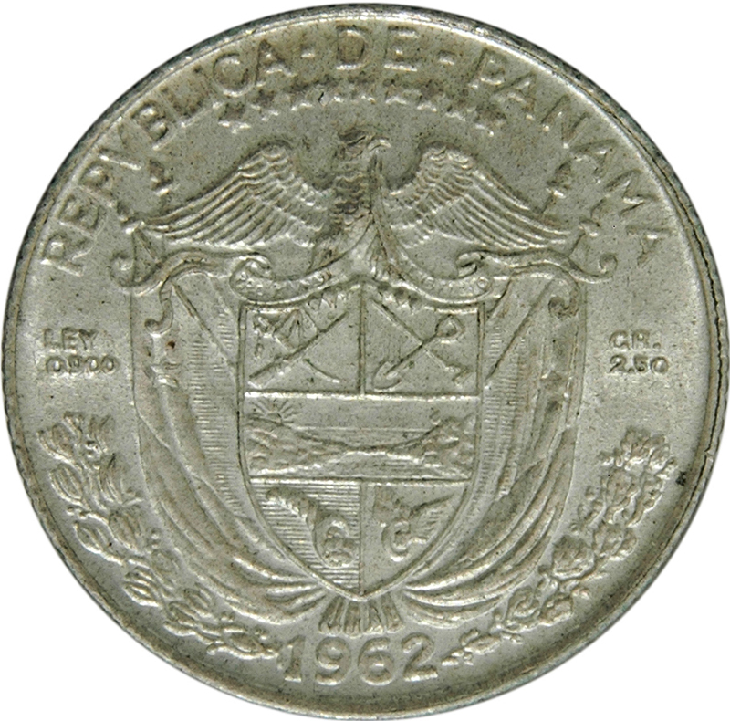 Опис: Герб Панами з 9 зірками зверху, що символізують 9 провінцій країни (зараз їх десять), разом з назвою країни зверху, вміст срібла з обох боків, дата знизу.