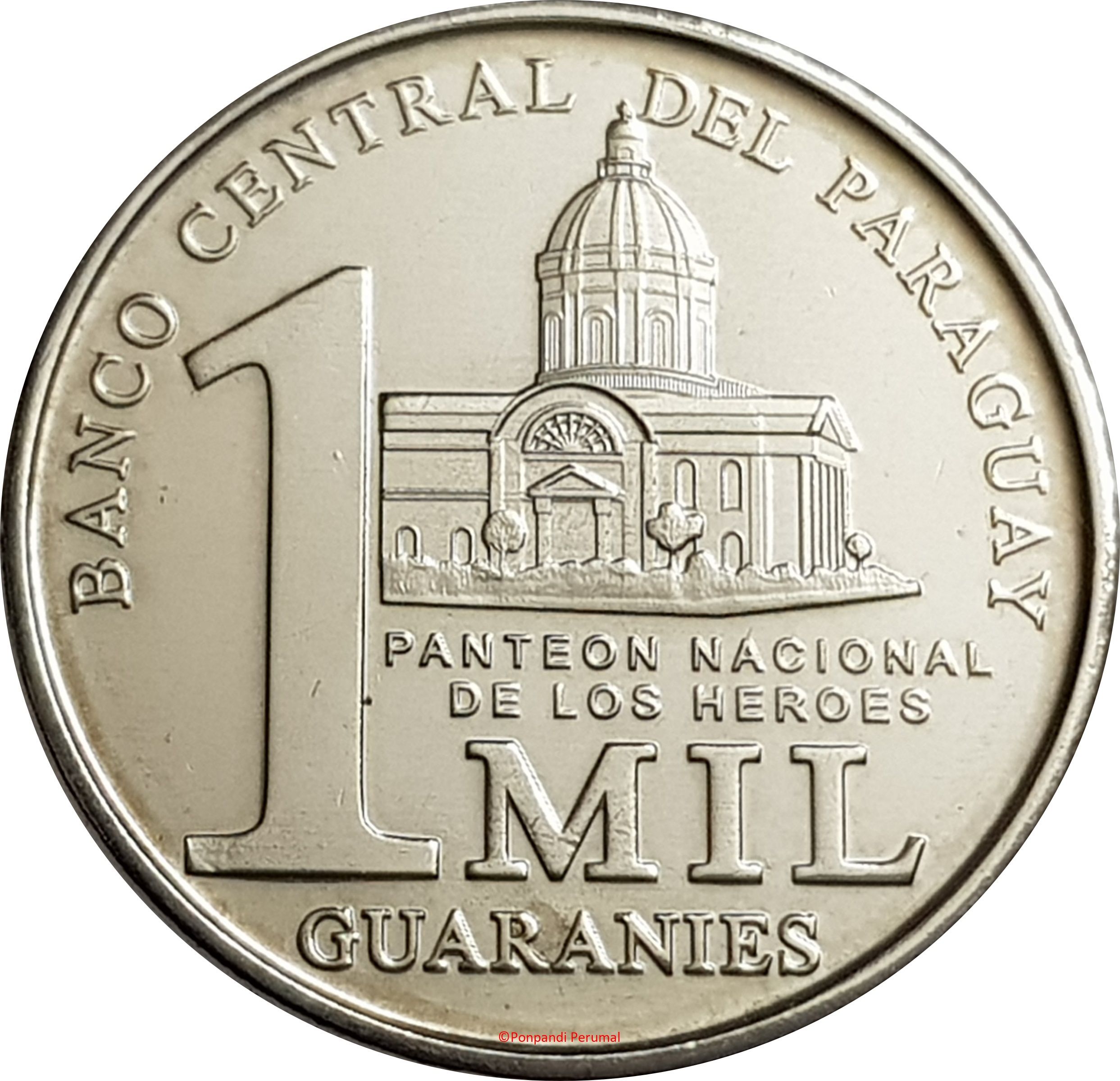 Опис: Назва країни з портретом генерал-маршала Франсіско Солано Лопеса, рік випуску та номінал мовою гуарані («SU GUARANI») нижче.