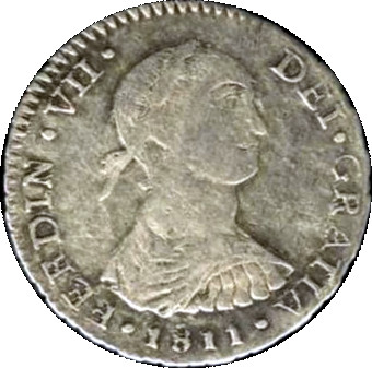 1 реал — Фердинанд VII (колоніальна монета з різьбленням) 1808 – 1811 Перу