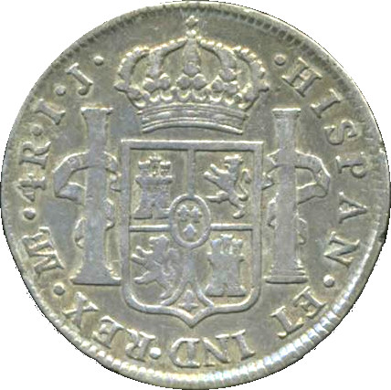 4 реала — Карл IV (цифра IV — портрет Карла III) 1789 – 1791 Перу