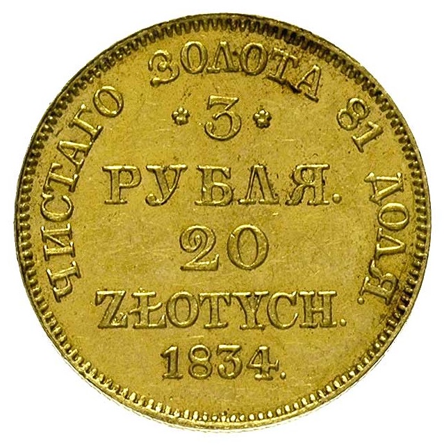 20 злотих / 3 рублі — Микола I (Варшава) 1834 – 1840 Польща, Конгресове Королівство