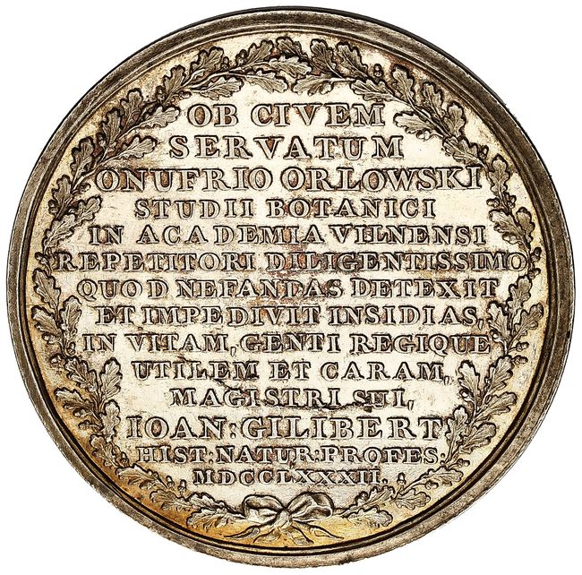 OB CIVEM / SERVATUM / ONUFRIO ORLOWSKI / STUDII BOTANICI / IN ACADEMIA VILNENSI / REPETITORI DILIGENTISSIMO / QUOD NEFANDAS DETEXIT /