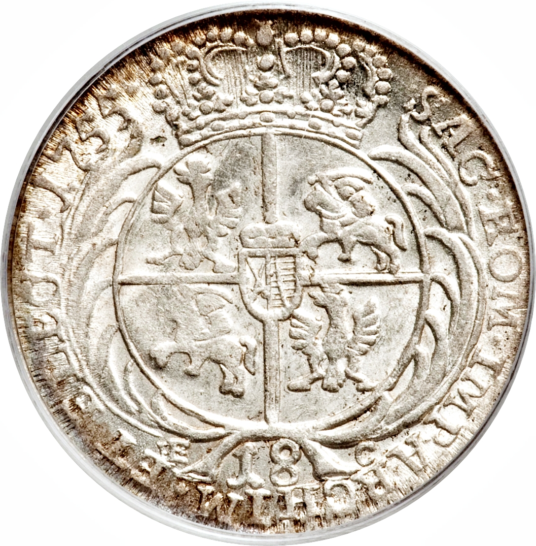 Орт / 18 грошей — Август III (Лейпциг) 1755 – 1755 Речпільська-Литовська Республіка