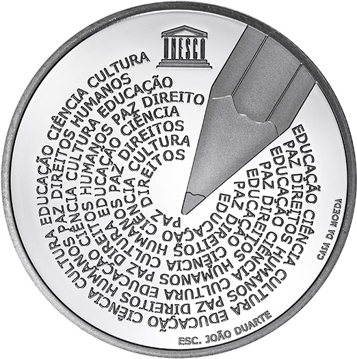 Опис: ЮНЕСКО проголосила 5 травня Всесвітнім днем португальської мови, визнаючи важливість мови, яка на сьогодні є найпоширенішою в південній півкулі і якою володіють понад 265 мільйонів людей. На знак визнання значення португальської мови у світі, Casa da Moeda викарбувала пам'ятну колекційну монету, створену скульптором Жоао Дуарте.