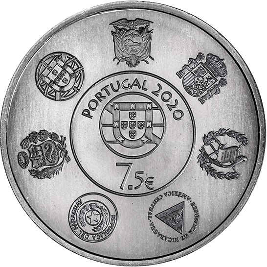 Опис: У центрі — герб Португалії, оточений назвою країни «PORTUGAL», номіналом та роком. Навколо розташовані 7 гербів іберо-американських країн, а саме: Еквадору, Іспанії, Гватемали, Нікарагуа, Парагваю, Перу та Португалії (за годинниковою стрілкою).