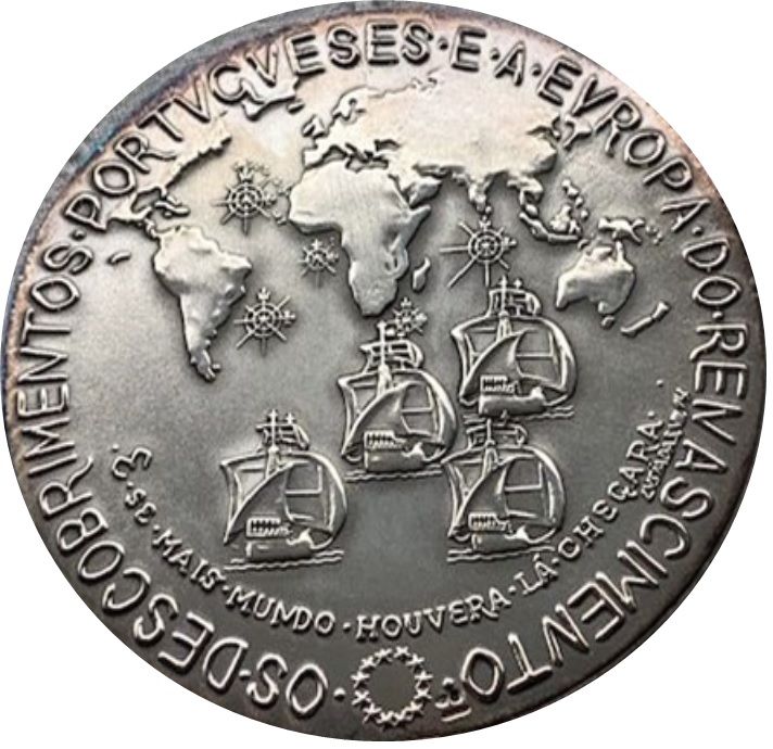 Опис: У центрі монети зображено герб Португалії, оточений рослинними елементами, а внизу — астролябія. Край монети обмежений написом.