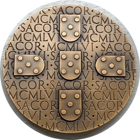 Опис: На національному гербі Португалії зображено 5 ран Христа на хресті, вибитих у вигляді хреста на медалі. На тлі горизонтально та повторно вигравірувано римську дату 1961 та SACOR.