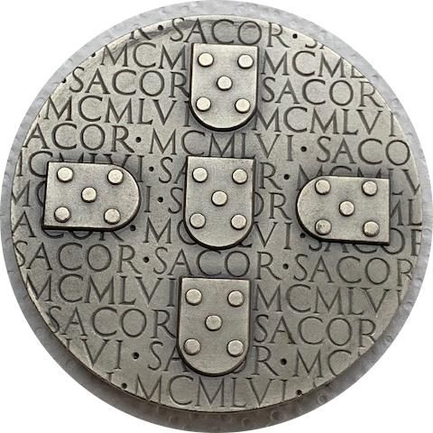 Опис: На національному гербі Португалії, вибитому на медалі у вигляді хреста, зображено 5 ран Христа на хресті. На тлі горизонтально та повторно вигравірувано римську дату 1961 та SACOR.