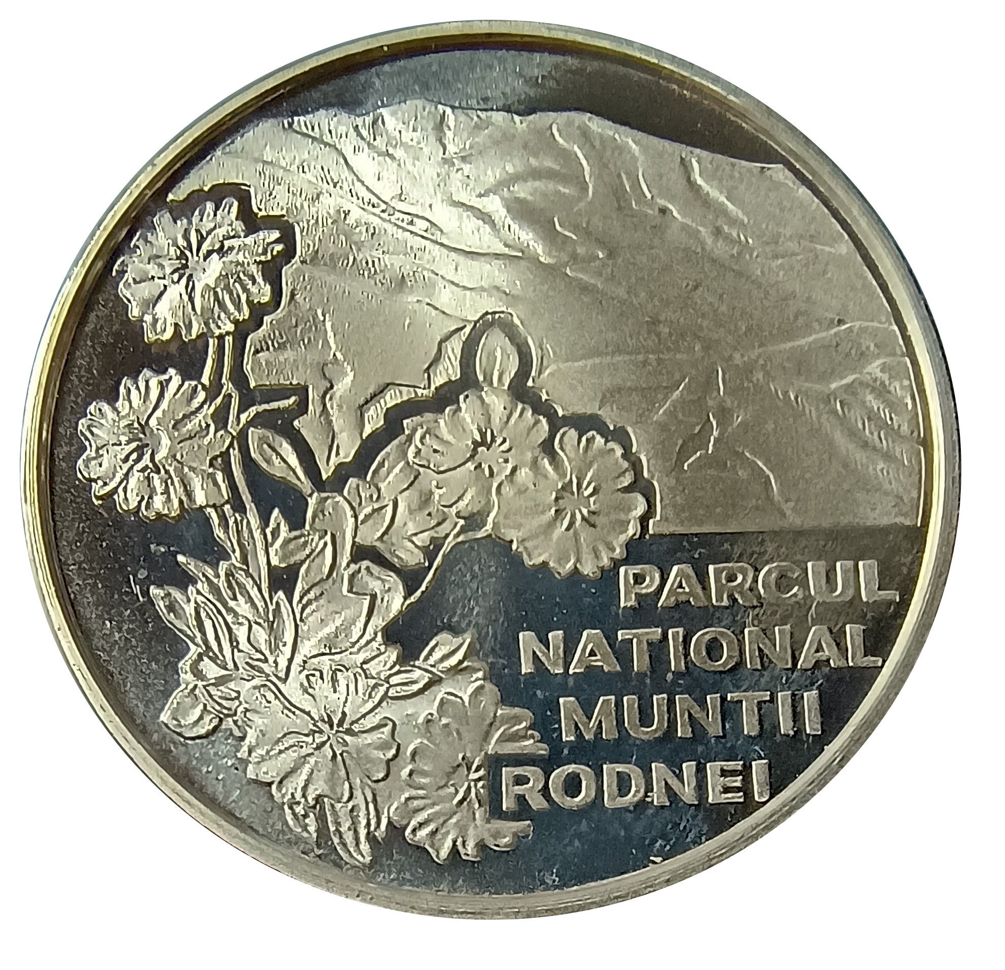 Опис: На аверсі медалі зліва зображено квітку Guşa porumbelului або Opaiţul Munţilor Rodnei (Lychnis nivalis), у верхній частині — пейзаж гір Родні, а внизу — текст «PARCUL NATIONAL MUNTII RODNEI» (Національний парк гір Родні).