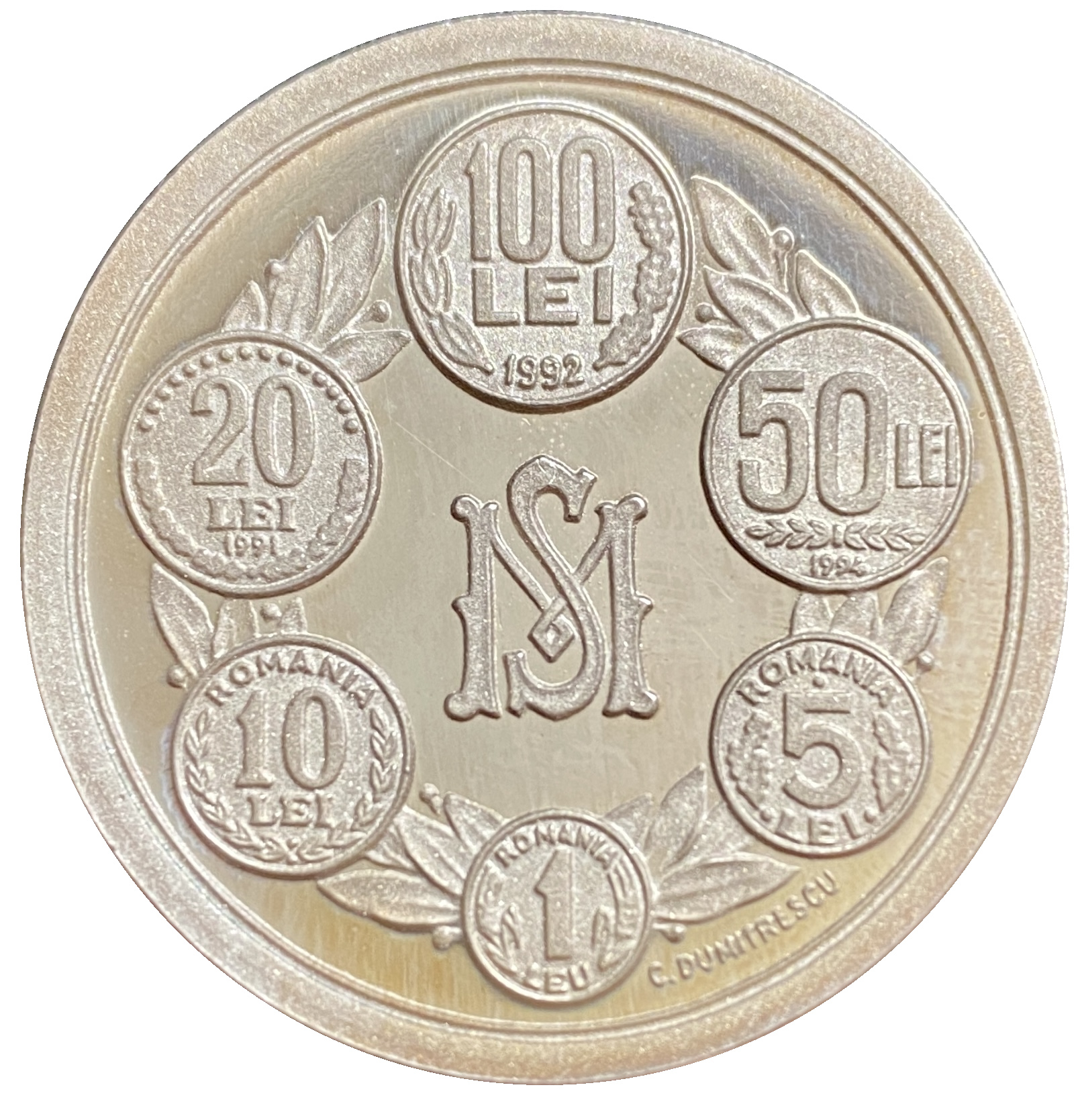 Опис: Монети третьої серії лея (1992-2003) з логотипом Румунського державного монетного двору. Ім'я гравера біля краю.
