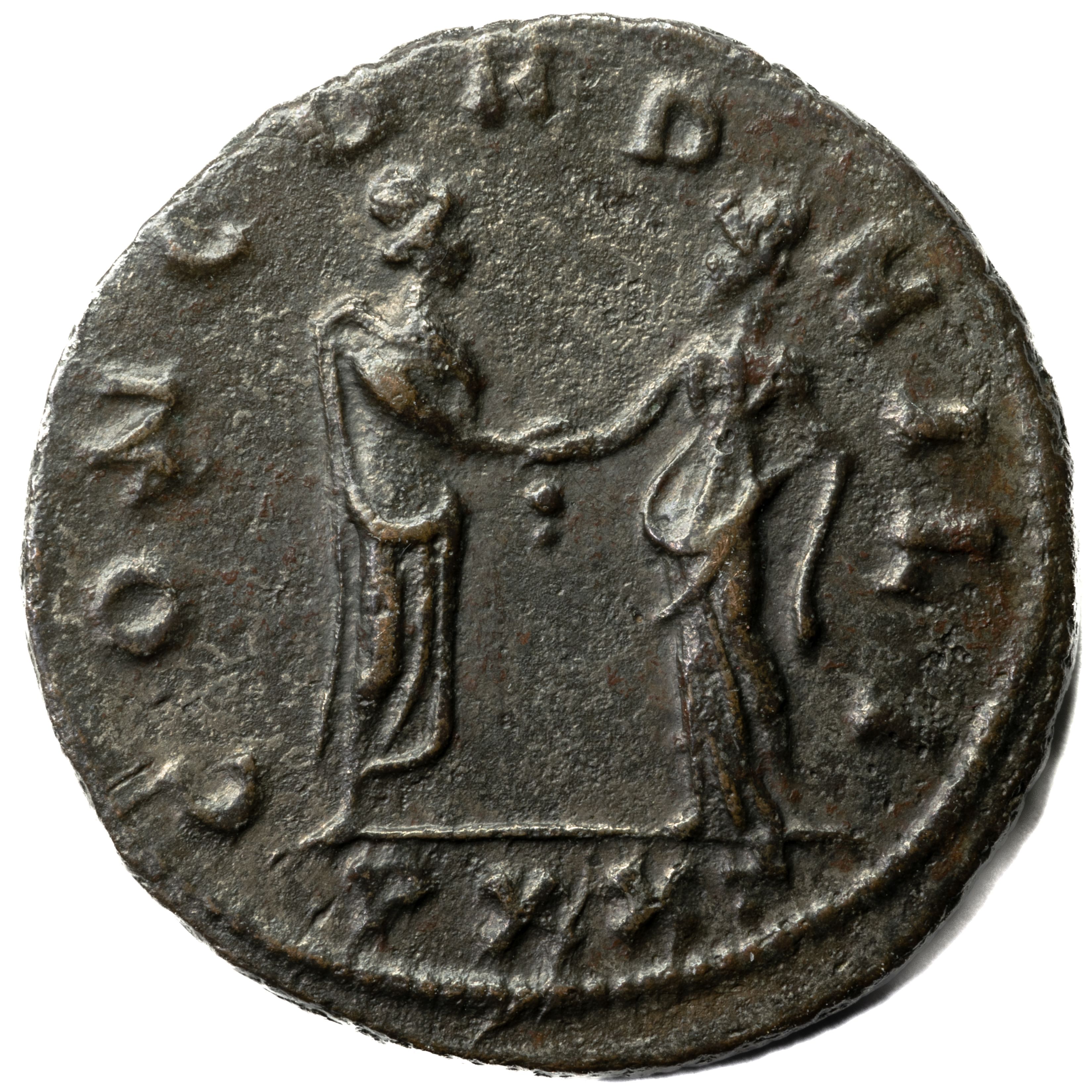 Назва: Антонініан — Проб (в обладунку, ліворуч, зі списом і щитом, ззаду; CONCOR MIL[I]; Конкордія)