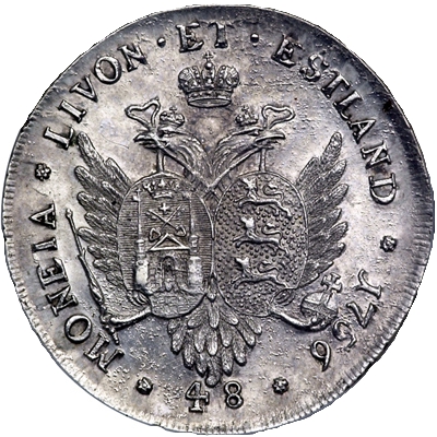 48 копійок — Єлизавета (Красний; зразок; тип 1) 1756 – 1756 Лівонія та Естонія